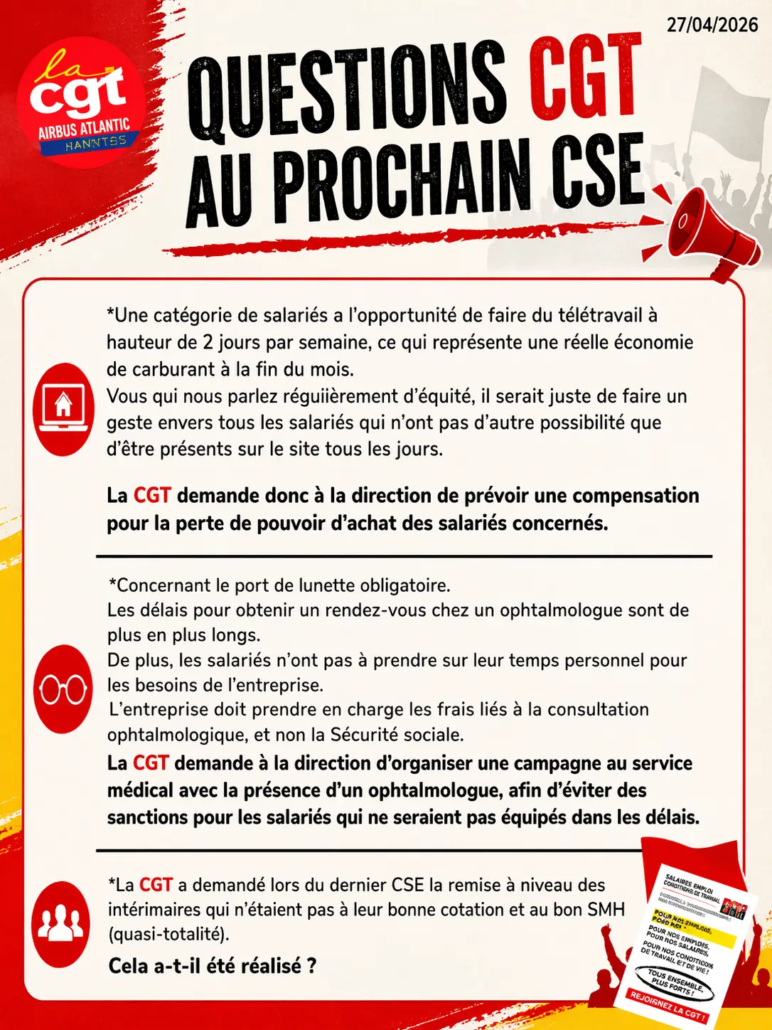 Invitation tous.tes les syndiqué.es CGT le 27/03 ou 03/04 à 11H