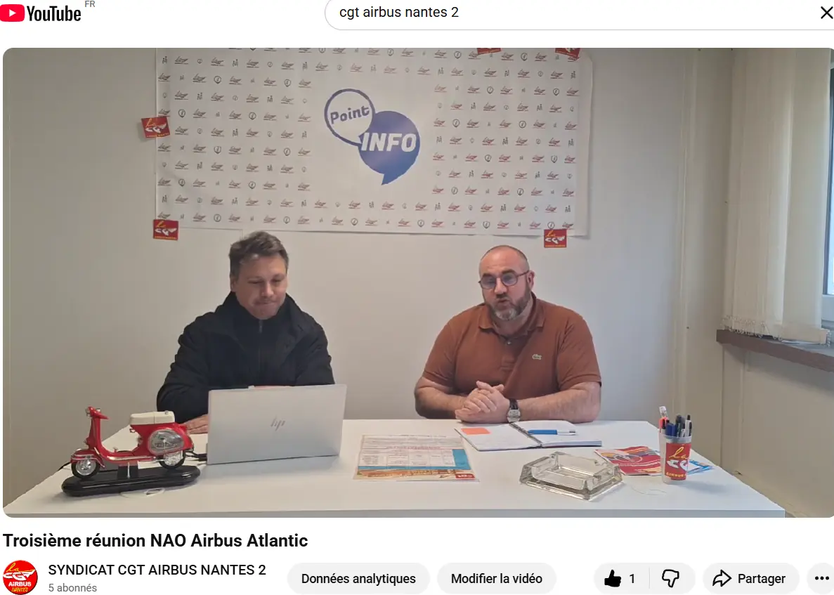 Première réunion le 13/03/2026 des NAO chez Airbus Atlantic Video sur You tube Cgt Airbus Nantes 2