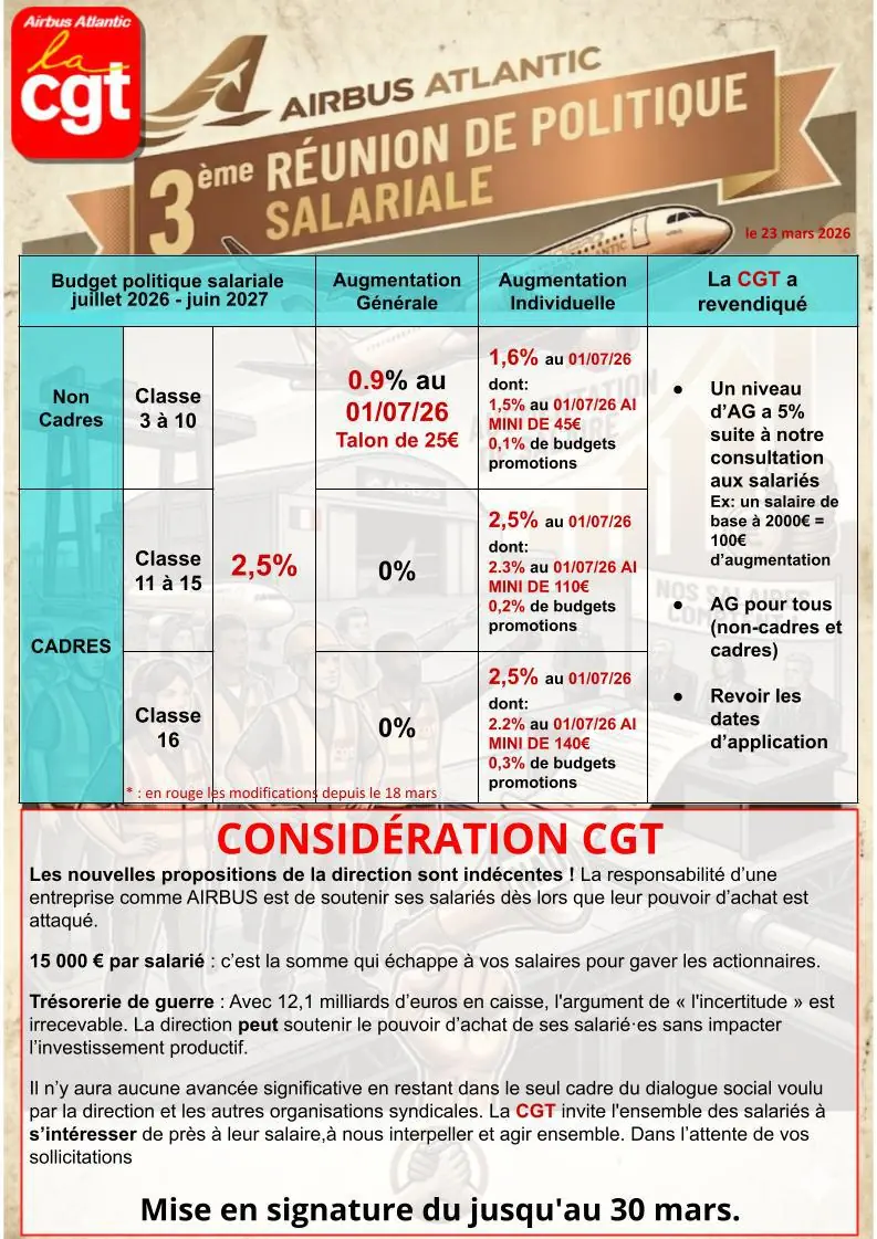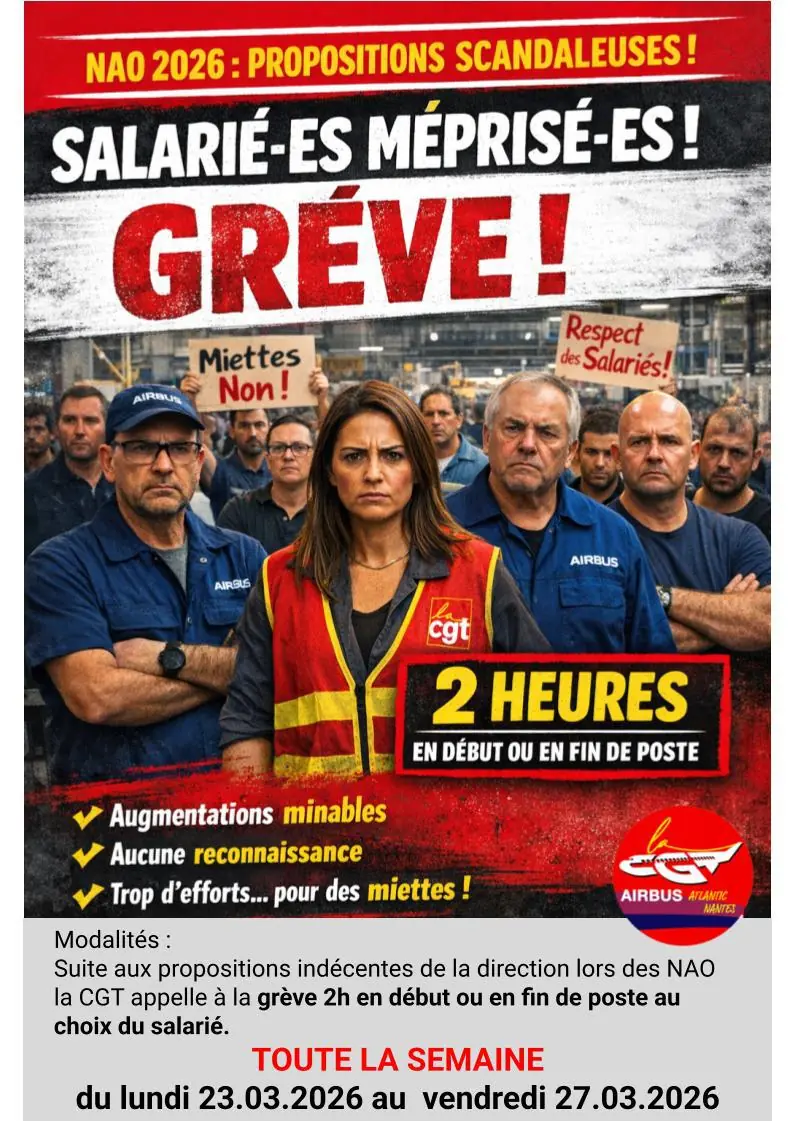 La première réunion des Négociations Annuelles Obligatoires (NAO) 2026 chez Airbus Atlantic s’est tenue le 13/03/2026. La direction y a présenté sa lecture de la situation économique et sociale de l’entreprise. Dans cette vidéo, la CGT vous explique :